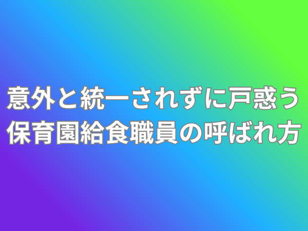 先生?さん付け?意外と統一されずに戸惑う保育園給食職員の呼ばれ方