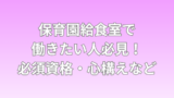 現在、保育園給食調理の仕事では、「生きていくために欠かせない食に関する知識」を必要とされ、後世を担う子どもたちの心身を養っていくための食育を行っていくことが、義務付けられています。