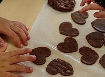 • 園児すべてにかかわってもらい、バレンタインのクッキーづくりをする