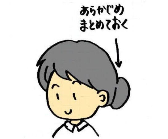 髪の毛を切るのはちょっと…という人や、伸ばしたいと思っている人は、出勤時からお団子やポニーテールにまとめておくと職場でサッと準備できますね。