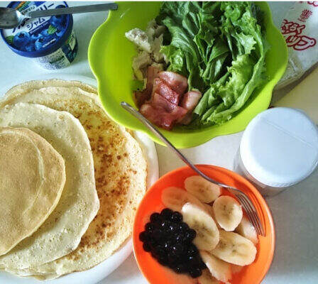 片面が焼けたら、もう片方は表面が乾く程度に焼けば出来上がりです。焼きすぎないように気を付けましょう。 - 生地に巻く具材の用意ができたら、各自で自由に巻いて食べるのが我が家流です。