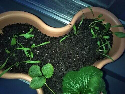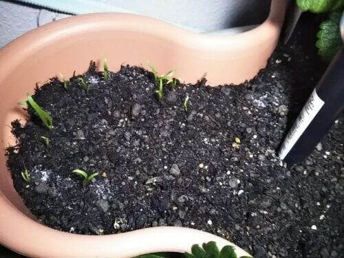 種まきから8日後、ほうれん草の芽がかなり増えました。