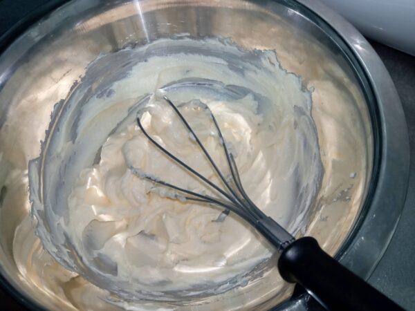 - 2に卵・豆乳・ホットケーキミックスの順に入れて混ぜる。